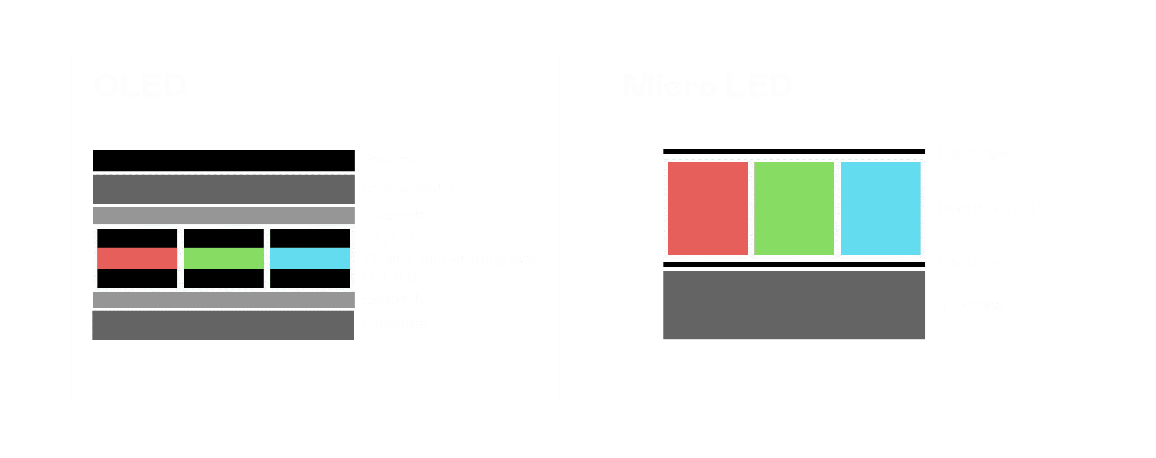 以 LED 做为显示画素,,,,可让 LED 的发光效率发挥到极致,,,从而让显示器具备优异的亮度表现,,,不论是在户外或室内,,均具备出众的显示效果。。。同时,,,,与使用有机材料的 OLED 相比,,,LED 具备更稳定、、、寿命更长的特性,,,不仅不会有画面烙印问题,,,而且更不容易出现故障、、、、坏点。。