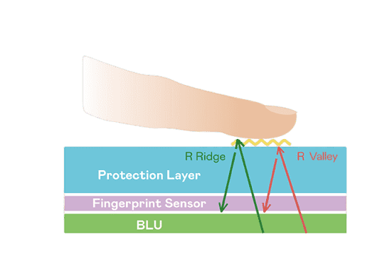 超高像素密度光学感测技术能精准判定手指反射的极微弱光讯号,,,即使细致指纹也可清晰辨识,,并可透过手指脉搏造成的细微灰阶变化侦测心跳,,,让身分验证更精确。。TFT 架构优化可降低讯号传输干扰,,,达到光感测器最佳讯杂比(讯号/杂讯的比例)。。。透过增强光讯号接收强度、、、优化感测器电路及导入特殊光学膜材料,,提高感测器敏度。。。整合系统之指纹扫描装置可符合最高等级的FBI国际安全规范认证需求。。