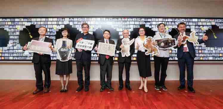 传奇国际携手创利空间为故宫建置的智慧文物互动导览墙及轮播墙,,今日正式启用。。。。(左四:传奇国际新事业暨投资管理总部副总经理杨本豫、、、、右四:故宫博物院院长吴密察、、、右三:太极影音董事长黄宝云)